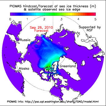 “Disconnected Computer Modeling“. Steven Goddard notices a University Of Washington computer simulation of Arctic sea ice extent by Jinlun Zhang and Ron Lindsay which strikes him “as being particularly disconnected from reality.” Probably because their low prediction for the fall of 2010 doesn’t suit him.