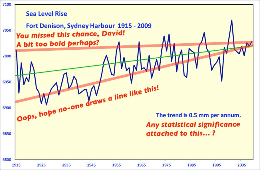 Fort Denison Australia Sea-level Rise Published 2011/12/03 at 979 × 640 in Hiding the decline down under – inconvenient papers censored David Archibald’s plot of sea-level at Fort Denison in Sydney Harbour, with a straight line slapped onto it to prove that there is no global warming. Share this: Click to email a link to a friend (Opens in new window) Email Tweet Click to print (Opens in new window) Print More Click to share on Reddit (Opens in new window) Reddit Share on TumblrLike Loading...